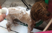 1頭終わるごとに浴槽を除菌・洗浄・水替え。