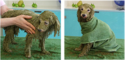 古い角質(フケ)を取り除き、ハーブの成分が被毛の一本一本を