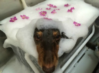 シャンプーの時に体を触られるのが苦手なワンちゃん、